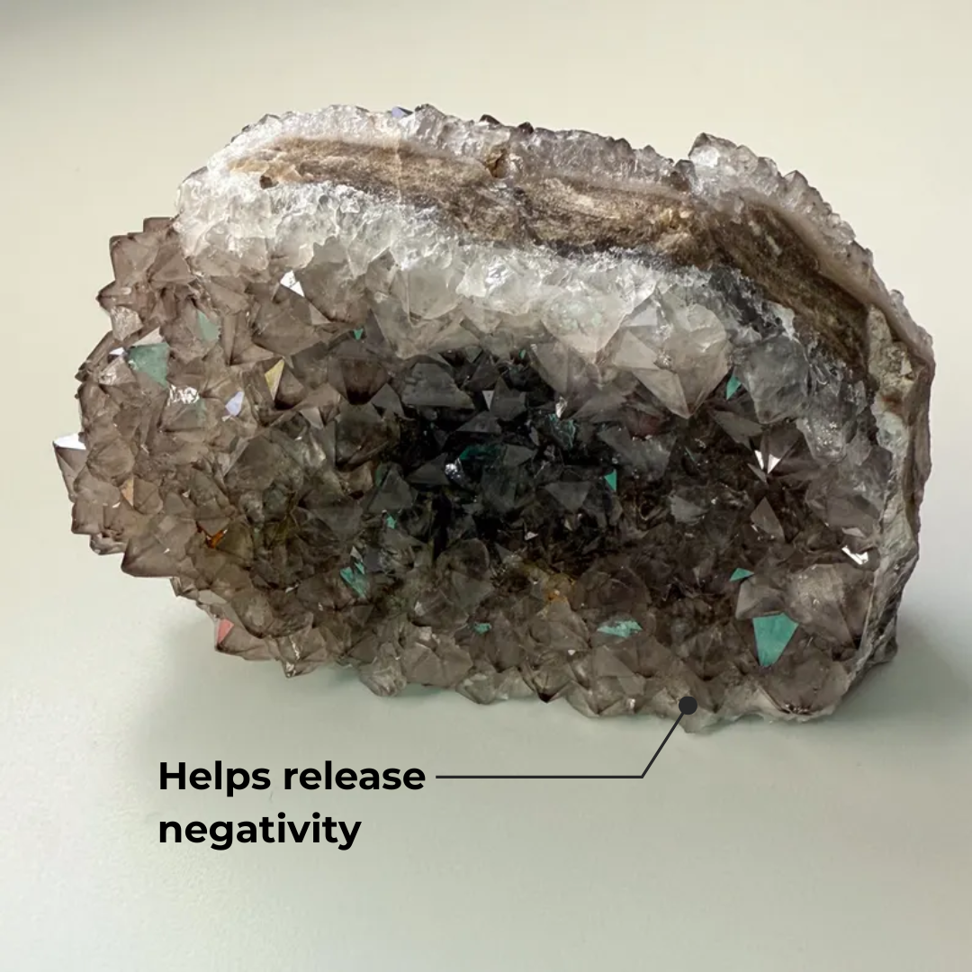 Smoky Quartz Cluster For grounding, protection, and calm strength.